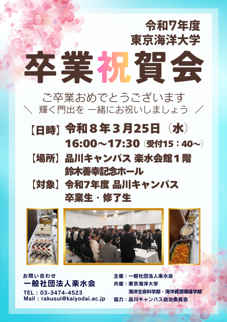令和7年度東京海洋大学卒業・修了祝賀会を下記要領にて実施いたします。